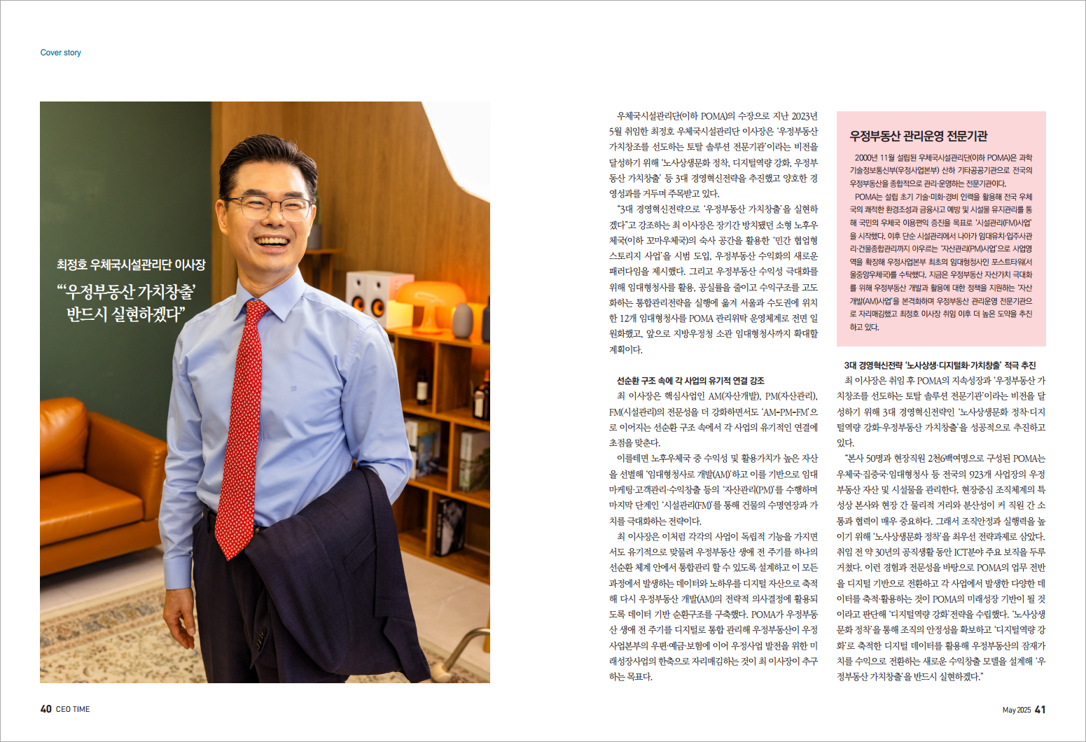 CEO TIME 6월호 최정호 우체국시설관리단 이사장 '우정부동산 가치창출’ 반드시 실현하겠다.